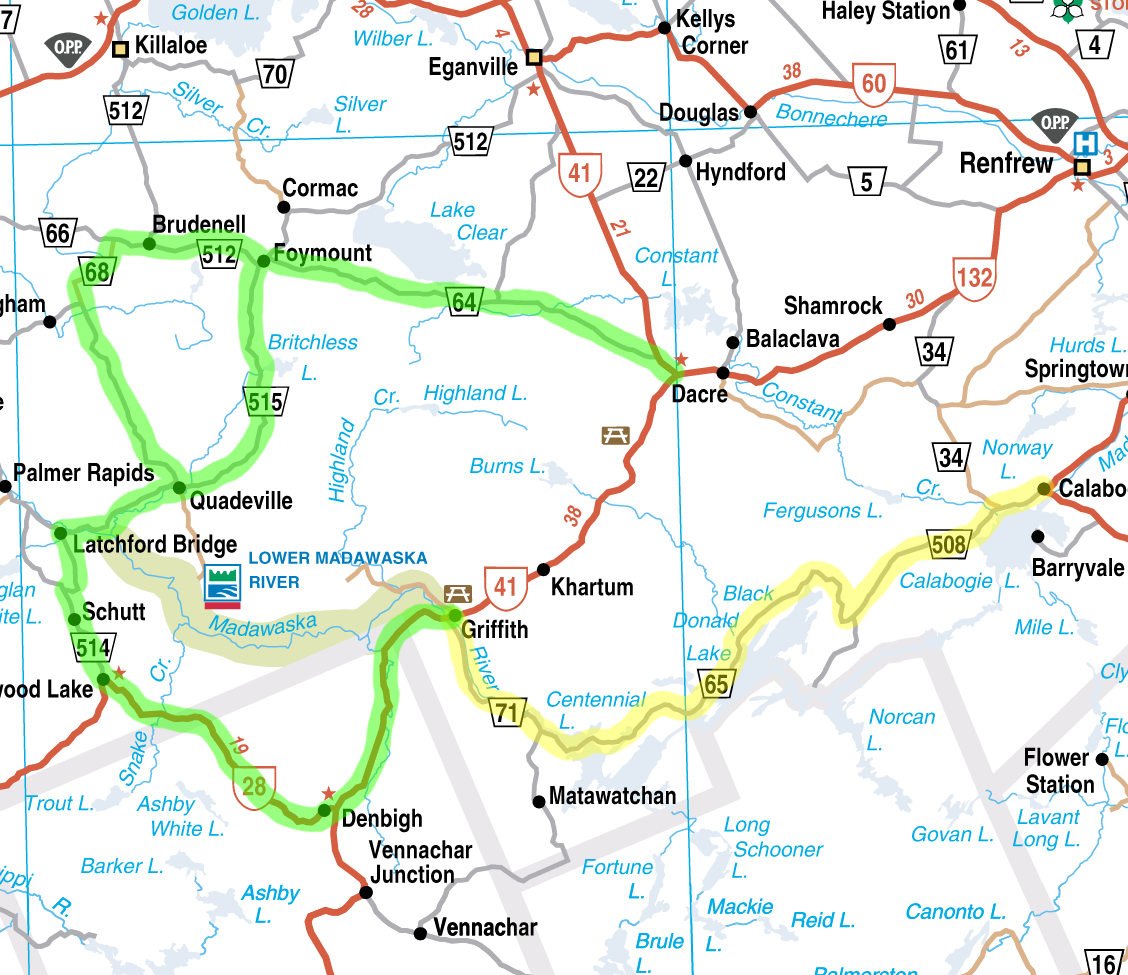 or (better) take Centennial Lake Road from Calabogie to Griffith (this is shown in yellow on this map, for reference).